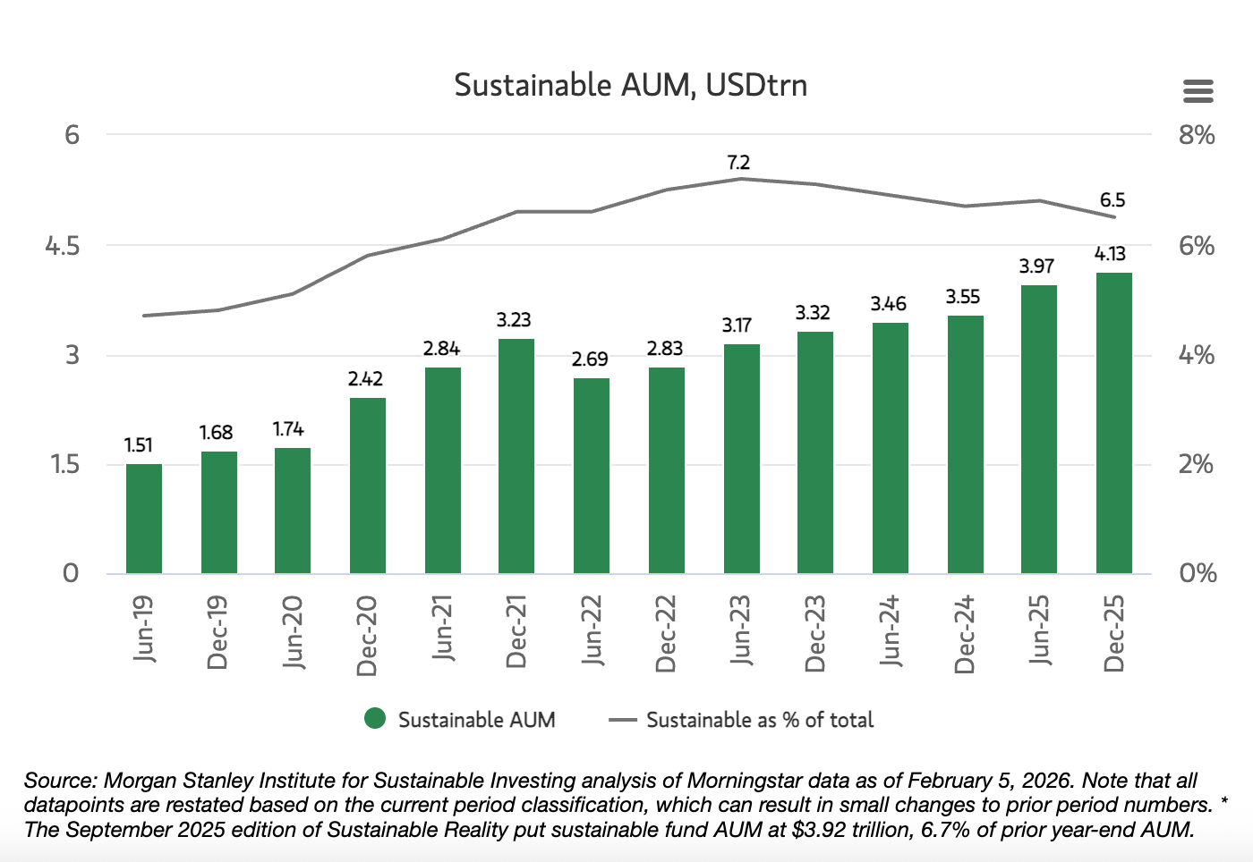 • Sustainable fund assets hit a record $4.13 trillion by end-2025, but their share fell to 6.5% as traditional funds attracted stronger inflows 📈