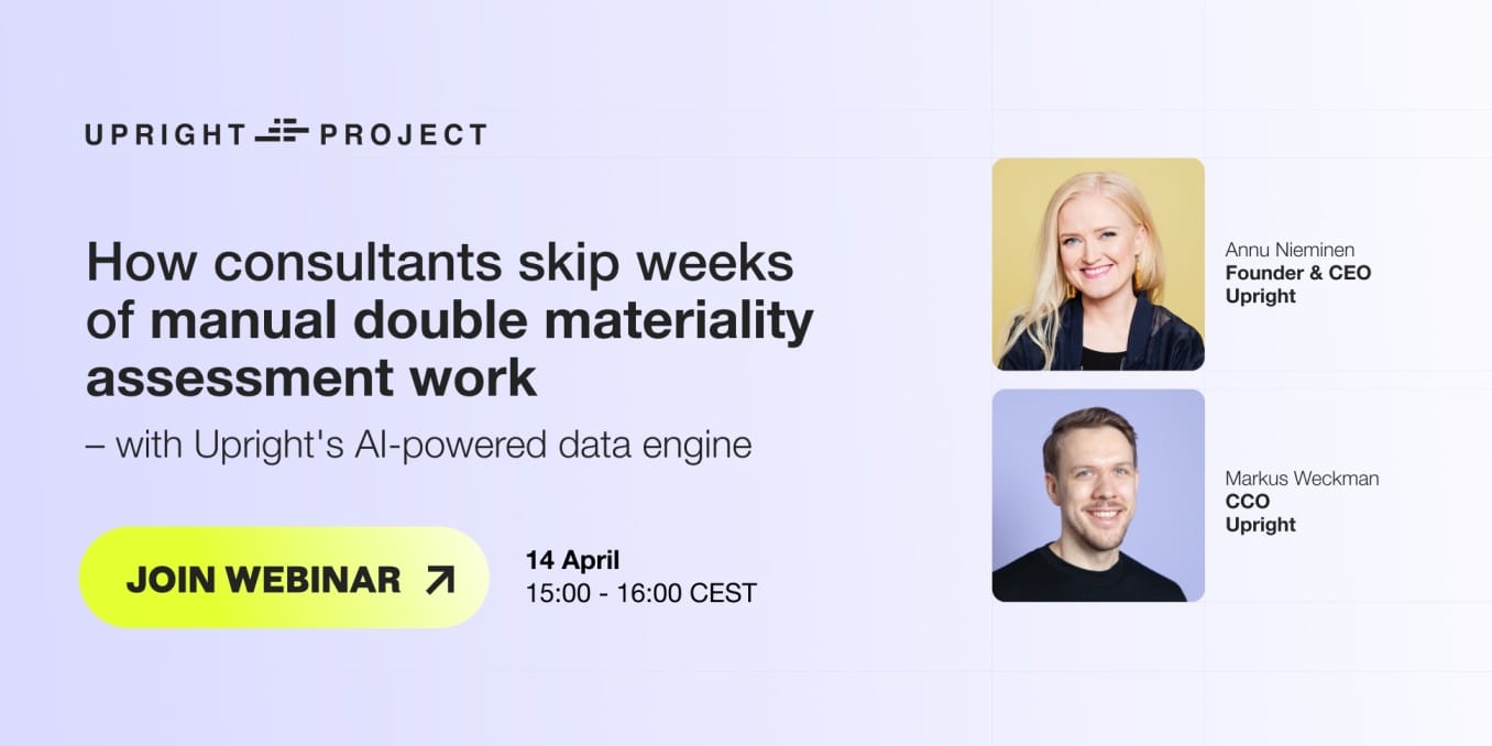 Live webinar for sustainability consultants and advisory professionals. Start CSRD and DMA projects from an 80–90% complete baseline.