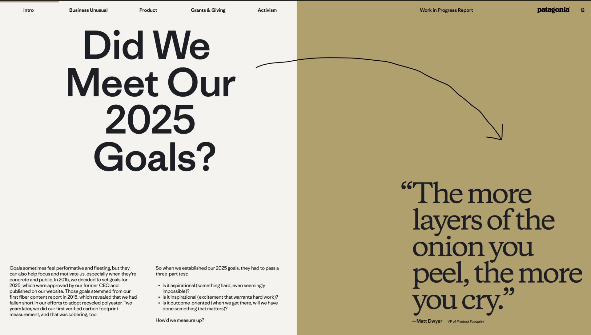A snapshot from Patagonia’s Progress Report | Credit: Patagonia